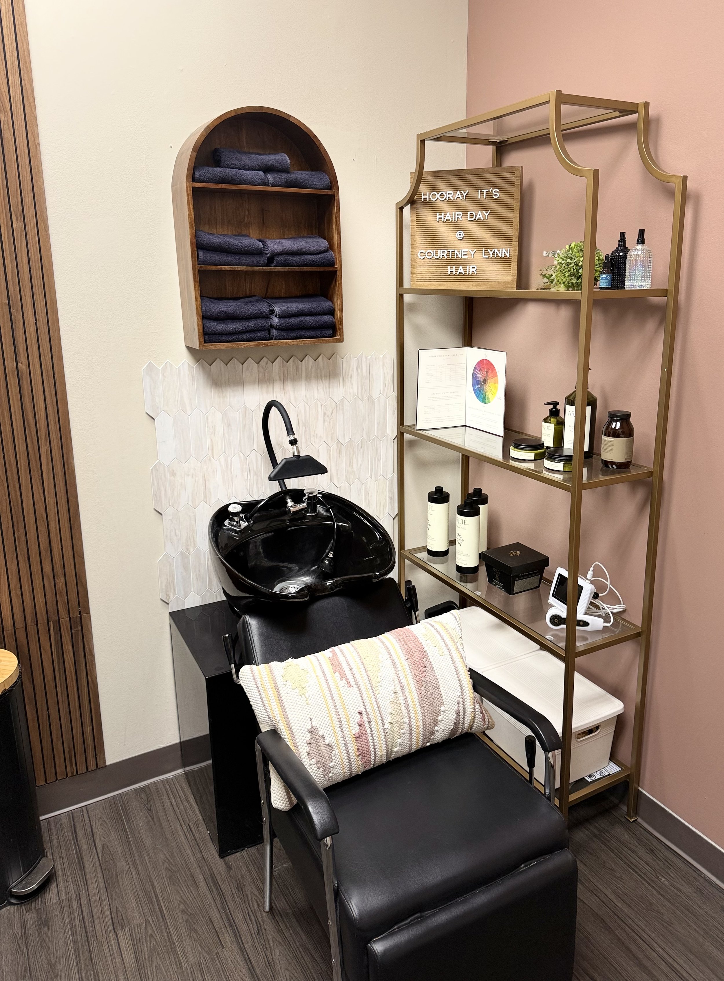 Courtney Lynn Hair Artistry is located inside Image Salons 2 in Sugar Land, Texas- just 20 miles Southwest of Houston. Tucked inside a private suite, the salon space is designed to reflect quiet luxury and a calm restorative experience.